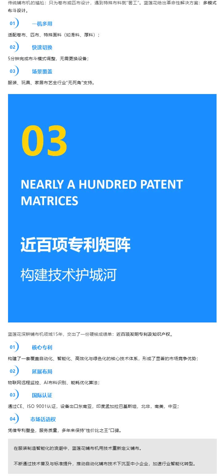 藍(lán)蓮花鋪布機(jī):近百項(xiàng)專利托起的鋪布革命,用技術(shù)重新定義鋪布